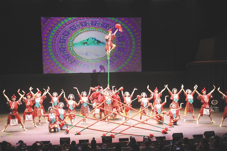 整场演出分为两个篇章,层层递进展现海南文化与发展图景。第一篇章萃取海南经典剧目精华片段,如海口市艺术团创排的原创黎族舞蹈诗《黎族家园》的选段《祀牛图》《福寿赋》《山兰谣》《舂米谣》《吸酒谣》《大跳柴》,原创黎族舞蹈诗《锦绣家园》选段《三月三》等,以及黎族竹木器乐代表性传承人黄龙乙带来原生态黎族歌曲《噻哟!》、黎族原生态器乐演奏《黎乡原色》等表演。一幕幕具有浓郁民族风情的表演,把在场观众带到千里之外的海南。