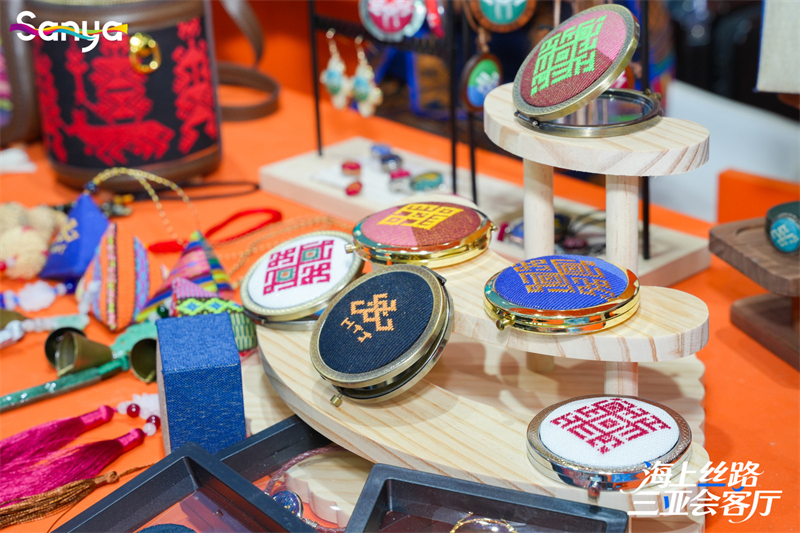 来自三亚育才生态区的南塔情手工艺品农民专业合作社带来了原创的系列文创产品,将非遗技艺融入当代设计理念,相得益彰。“现在乡村旅游十分火热,我们在‘家门口’吃上了旅游饭。随着越来越多游客的到来,我们也想用这种原创的文创产品,让大家了解和爱上非遗,满足当下游客个性化的旅游需求,给予大家深层次的文化体验。”该合作社负责人董欣滕介绍。