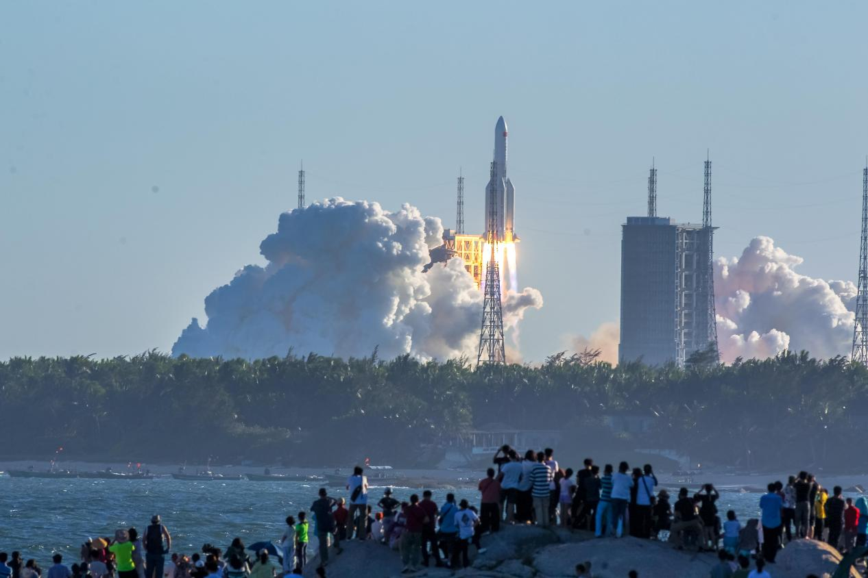 游客在文昌观看火箭发射。袁琛 摄