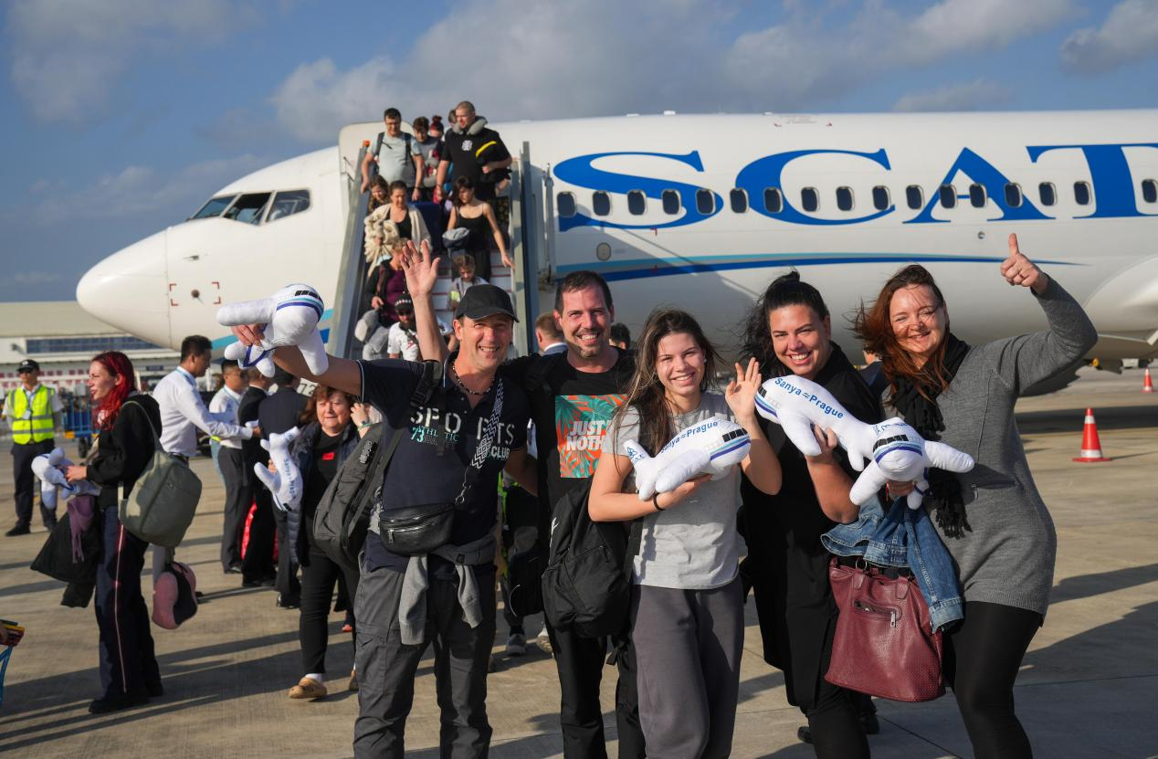 2025年12月22日,全国首批第七航权航班旅客从捷克布拉格飞抵海南三亚。王程龙 摄
