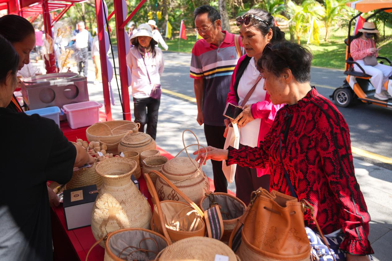 3月17日,三亚大小洞天旅游区,游客选购黎族的藤编文创产品。王程龙 摄