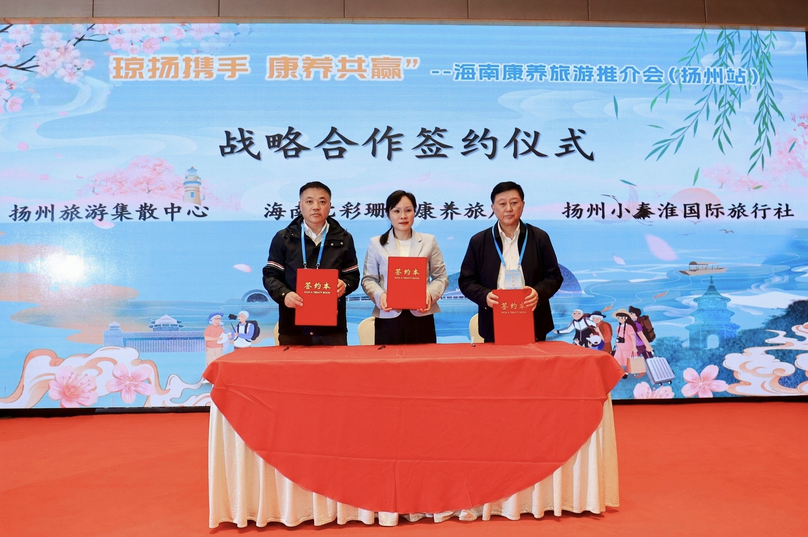 其二,海南康养旅居企业与扬州骨干旅游企业签署了客源输送与产品合作协议,标志着市场层面的直接合作通道正式建立。这两项签约构建了“行业协同、企业联动”的双层合作机制,为后续实质性合作奠定了坚实基础。