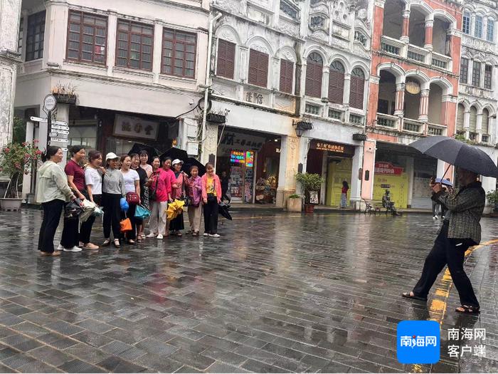 2024年9月23日,天空虽然飘着雨,但在海口骑楼老街依然可以看到三五成群的游客徜徉在中山路拍照打卡留念。活力、浪漫、热情,这是作为滨海省会旅游城市海口应有的样子。