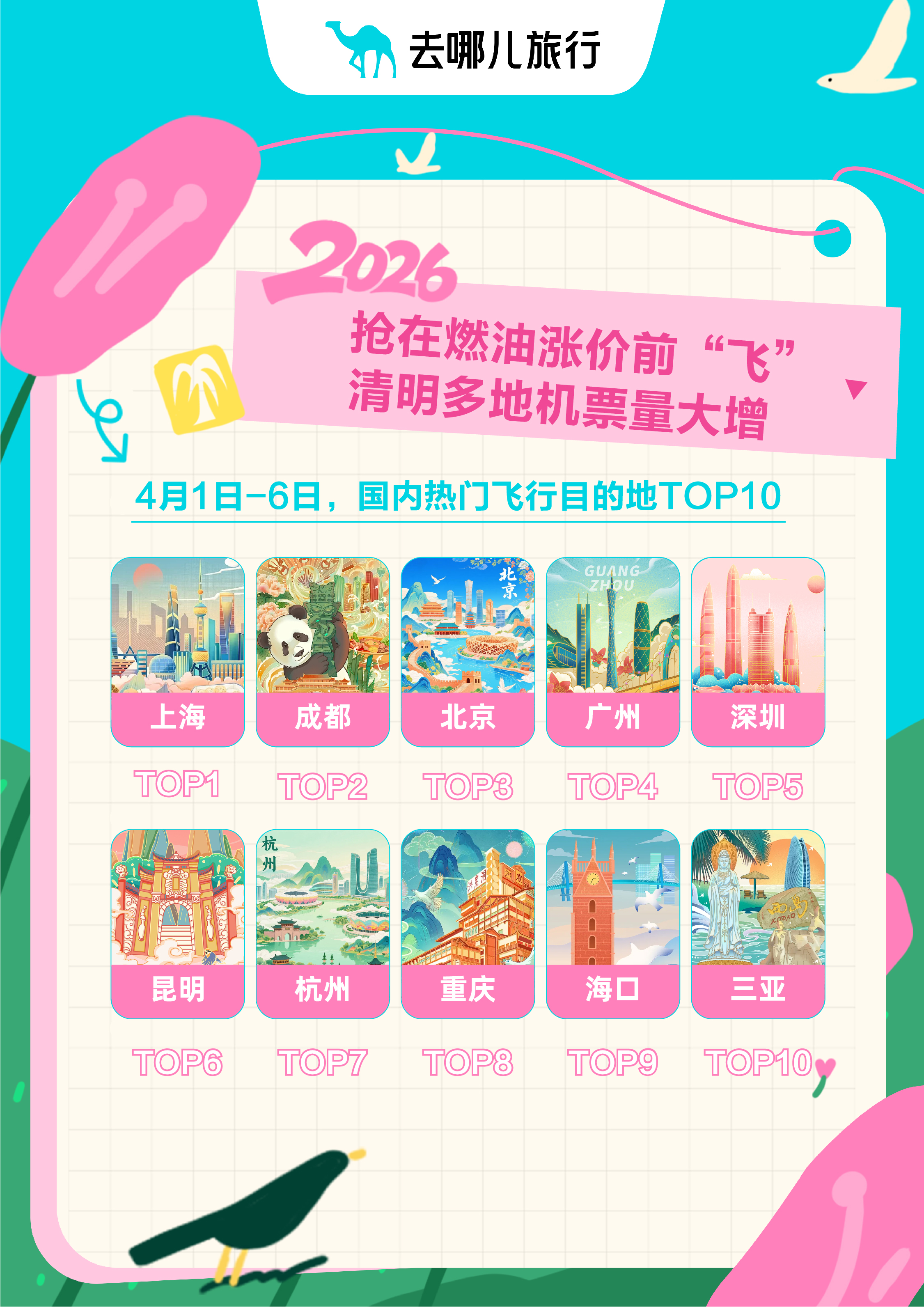 在去哪儿平台的全国春假出行热门目的地榜单中,三亚、海口双双跻身TOP10行列,与上海、成都、北京等城市一同成为春假期间最受游客青睐的出行目的地,三亚更与成都、昆明一同跻身国内最受关注的春游目的地前列。