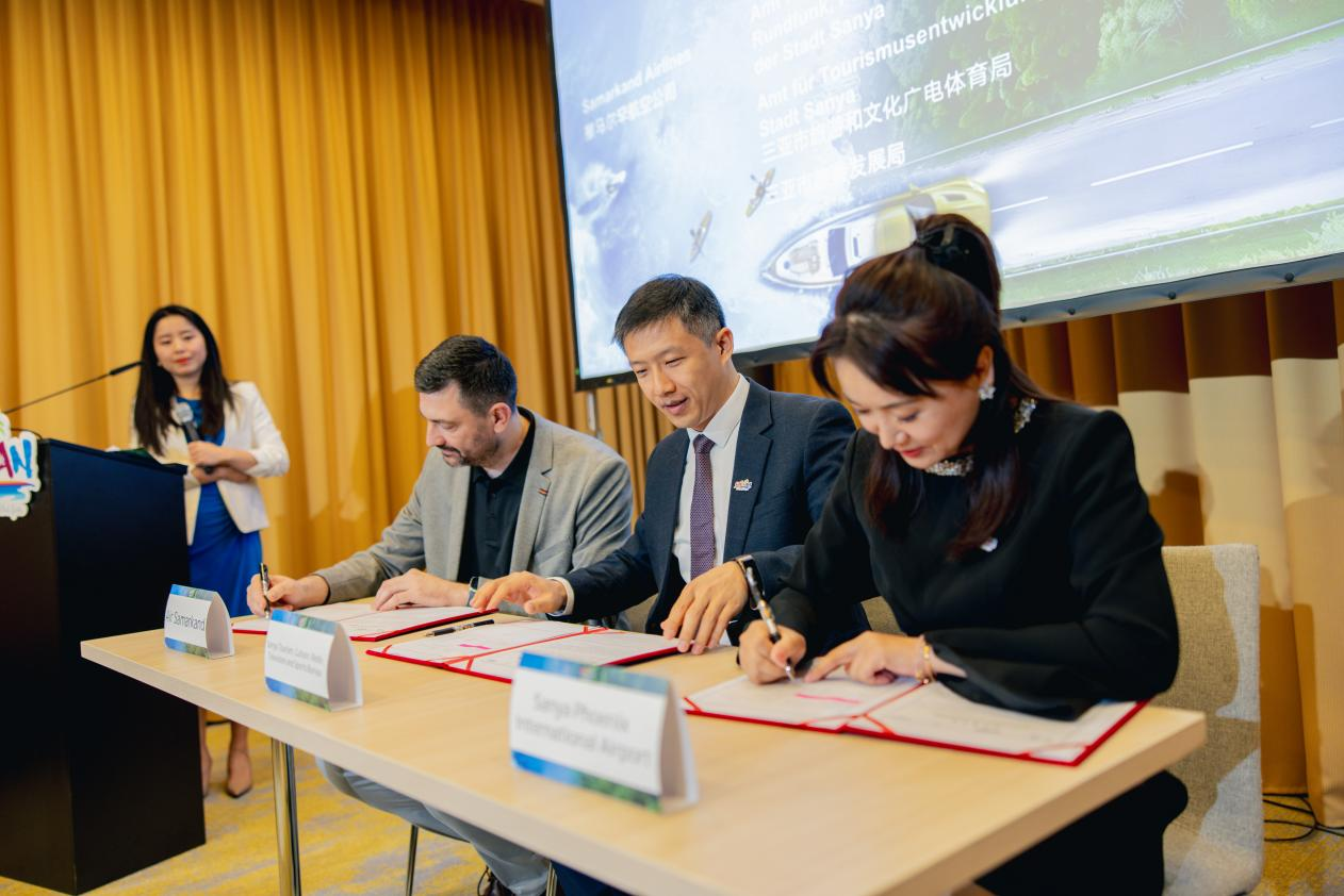 三亚市旅游发展局对三亚热带滨海旅游资源进行了专项推介,三亚凤凰国际机场重点介绍了机场航线网络及第五航权航线运营情况。期间,三亚市旅游发展局联合凤凰国际机场等企业与撒马尔罕航空、Easy Booking签署合作备忘录,两地将以航线开放新机遇深化亚欧旅游互联互通。