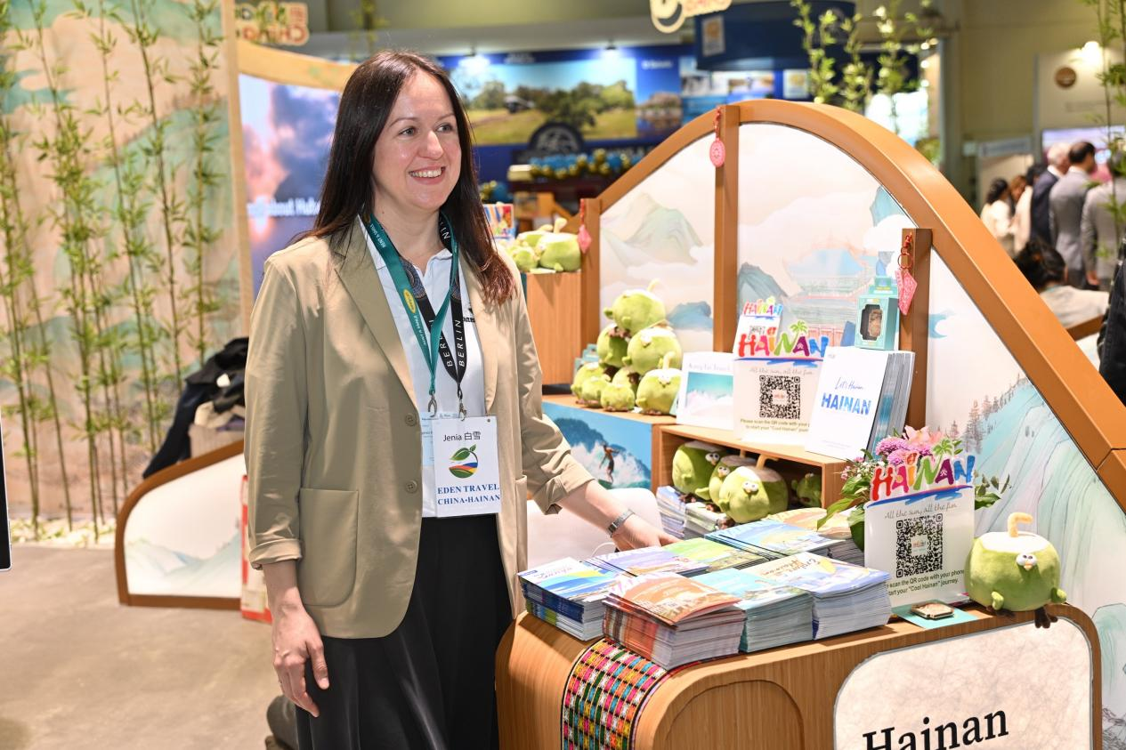 海南主题展台以“阳光海南 度假天堂”为主题,通过精心制作的宣传视频、折页画册以及独具匠心的文创产品,向世界递出了一张立体的“海南名片”,全面展示了海南自由贸易港背景下的文旅新形象。