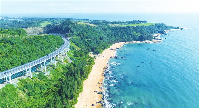 2023年12月18日,海南环岛旅游公路通车。这条依海而建,全长988.2公里的旅游公路,以景选线,以线串景,形成了一条串联海口、文昌、三亚等沿海12个市县众多景点的“珍珠项链”,展示了众多的海南元素、深层次的人文魅力和滨海优美的自然风光。