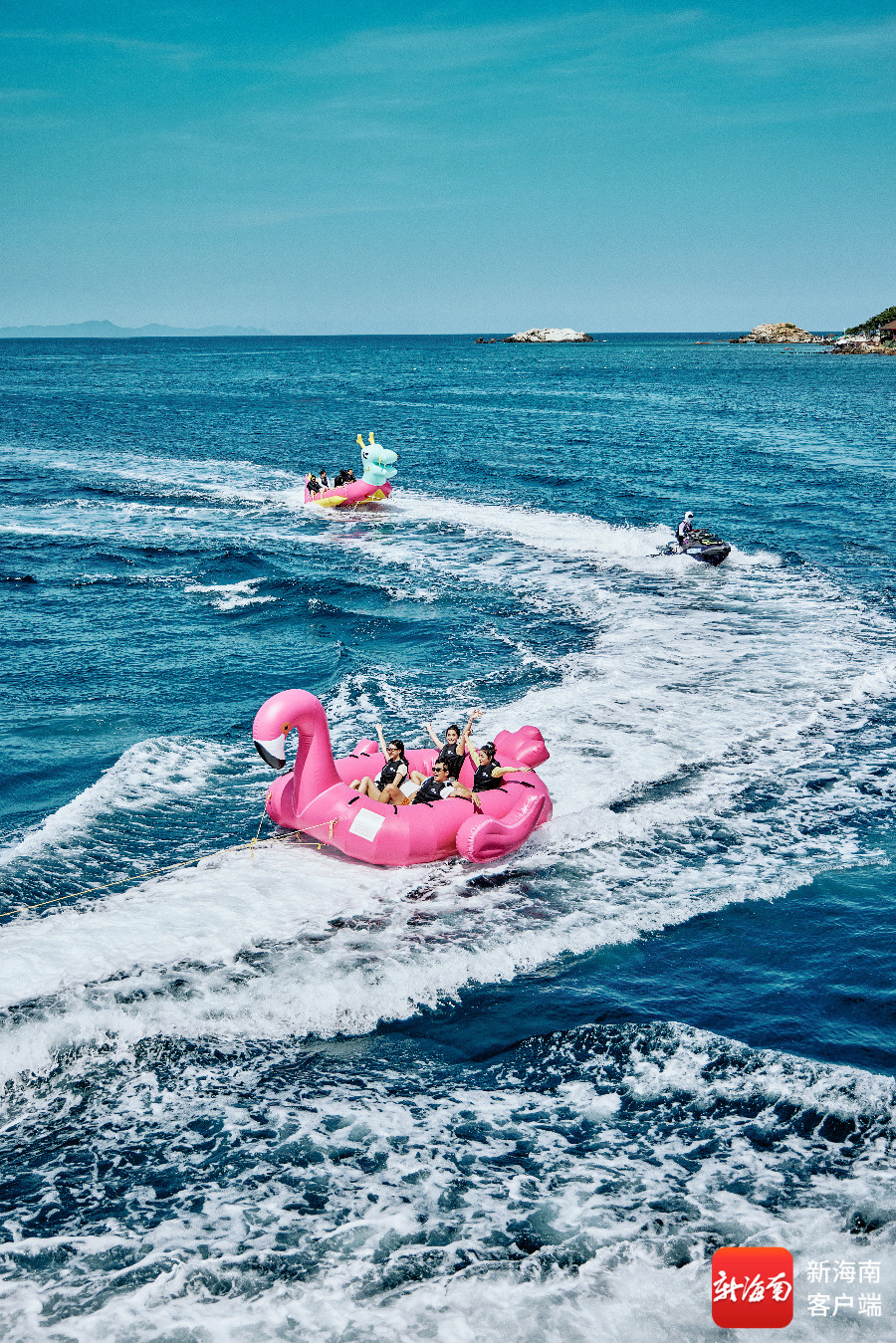 游客在三亚蜈支洲岛体验海上项目