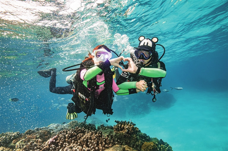 游客在蜈支洲岛旅游区潜水 李少云 陈宏 摄
