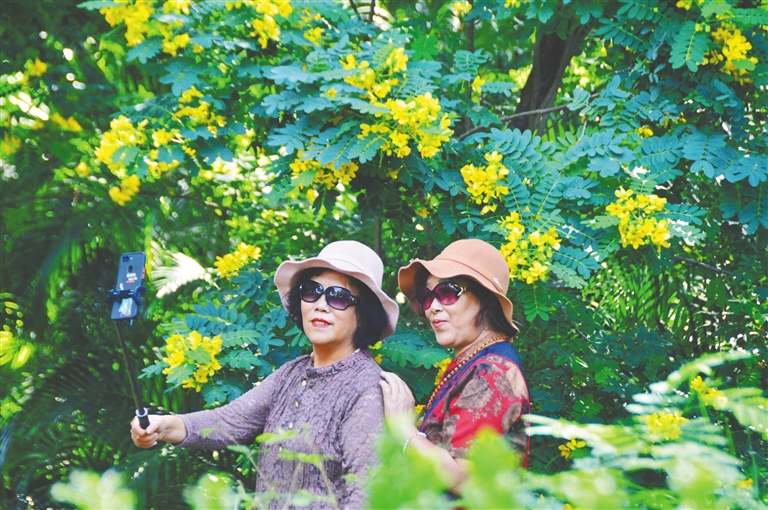 海南宜人的气候吸引大量候鸟老人来此旅居。图为候鸟老人在三亚白鹭公园游玩。海南日报特约记者 孙清 摄