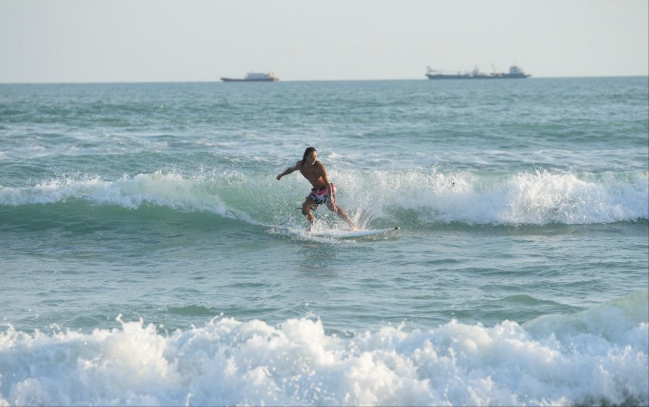 游客在三亚大东海旅游区冲浪。海南日报王程龙 摄